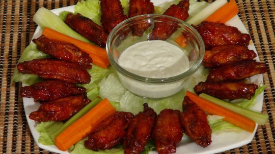 1. Mélanger ensemble et refroidir quelques heures avant de servir. Servir avec des ailes de poulet