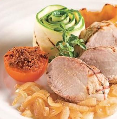 - Préchauffer le four à 205 °C (400 °F). Retirer le gras visible du filet de porc. Saisir sur le barbecue ou dans une poêle antiadhésive striée. Placer au four jusqu'à la cuisson désirée.
