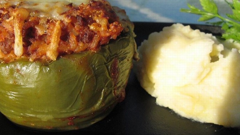 - Préchauffer le four à 350 ° F (175 degrés C). Placer les poivrons verts dans une casserole moyenne avec suffisamment d'eau pour couvrir. Porter à ébullition et faites cuire pendant 10 minutes. Retirer les poivrons de l'eau et mettre de côté dans un plat allant au four pouces 9x13.