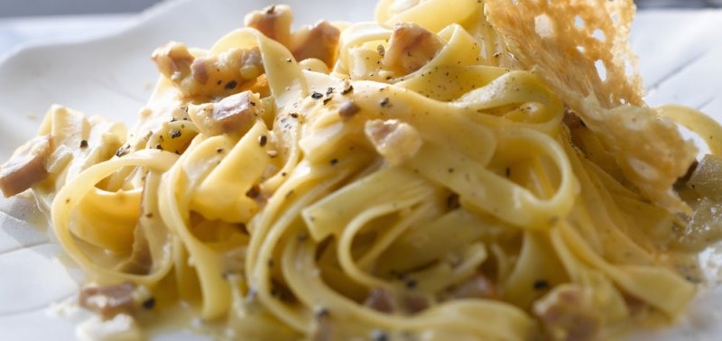 - Incorporer le mélange de crème et les oeufs aux pâtes; remettre la poêle sur le feu pendant 2 minutes et remuer pour que la sauce adhère aux pâtes. Assaisonner de sel et poivre. Garnir de fromage Parmesan canadien et servir.