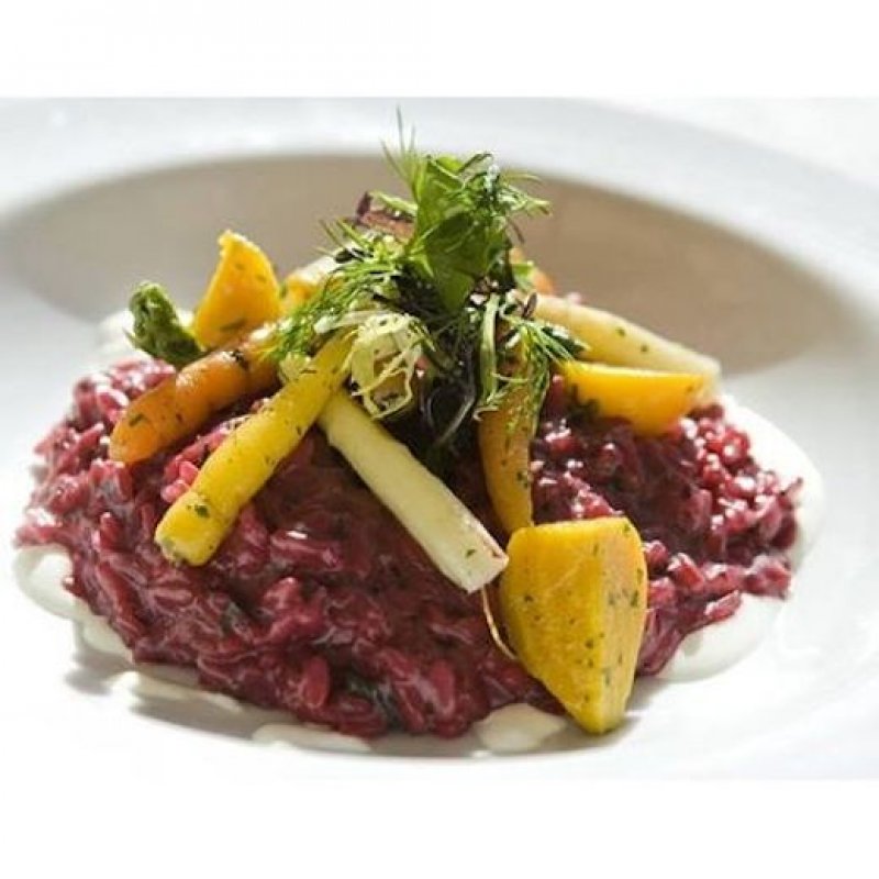 Pavés de truite sur risotto aux betteraves, sauce aux agrumes